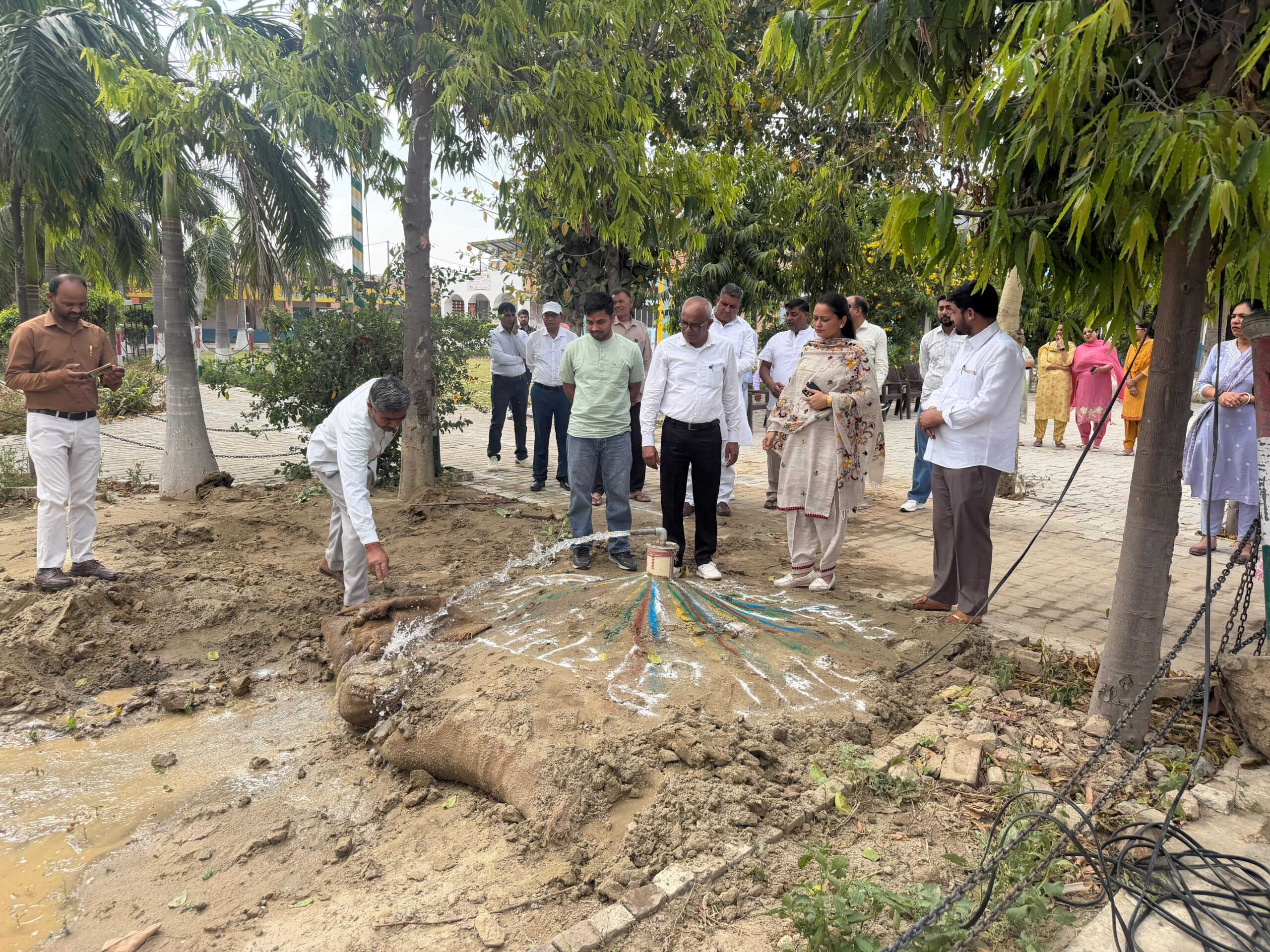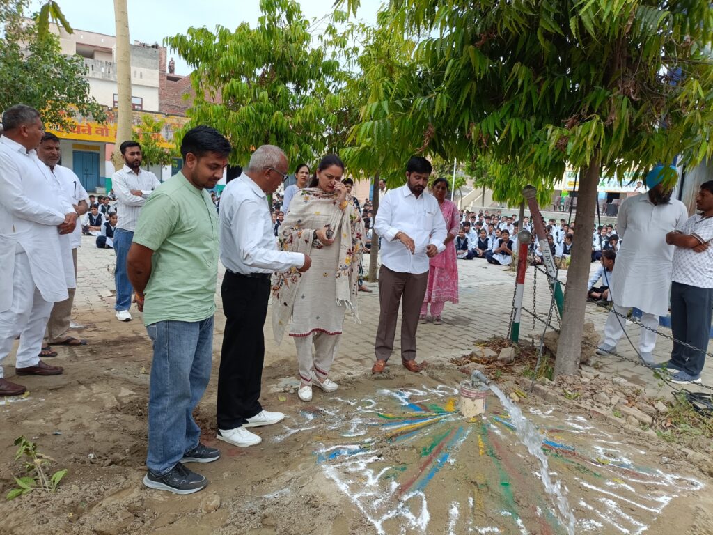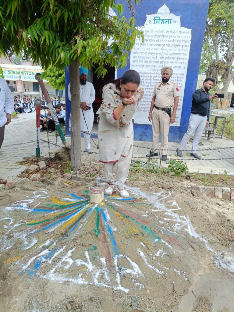 The opening ceremony of the newly installed borewell at GMSSSS Thana was scheduled to commence at 9:12 a.m. on 28th April 2026, sharp. The event was graced by Chairperson Smt. Kawaljeet Kaur, who inaugurated the borewell.The ceremony was attended by several distinguished guests, including the Sarpanch’s representative, Parshad, and notable personalities from the village. From the school, Principal Shri Om Prakash Ji, all students, and teaching staff were present to witness this important occasion.The event marked the successful installation of a new borewell in the school premises, which is expected to benefit the school community significantly. The presence of both local dignitaries and school members highlighted the collaborative effort and communal spirit involved in this initiative.The ceremony was conducted smoothly, emphasizing the importance of water resources and the school’s commitment to providing better facilities for its students and staff.